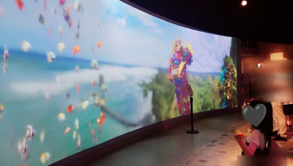 こちらは、自分の姿が植物や魚などに変化して映し出される、大型スクリーン。