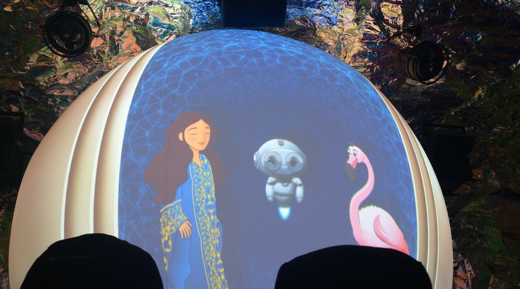 球体のスクリーンの前に集合してクウェートについての説明を見たら、
