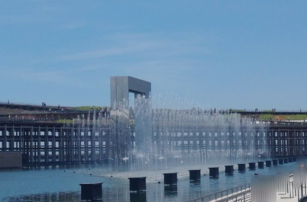 ちょうど噴水ショーが始まる時間だったので、ウォータープラザで食べました。